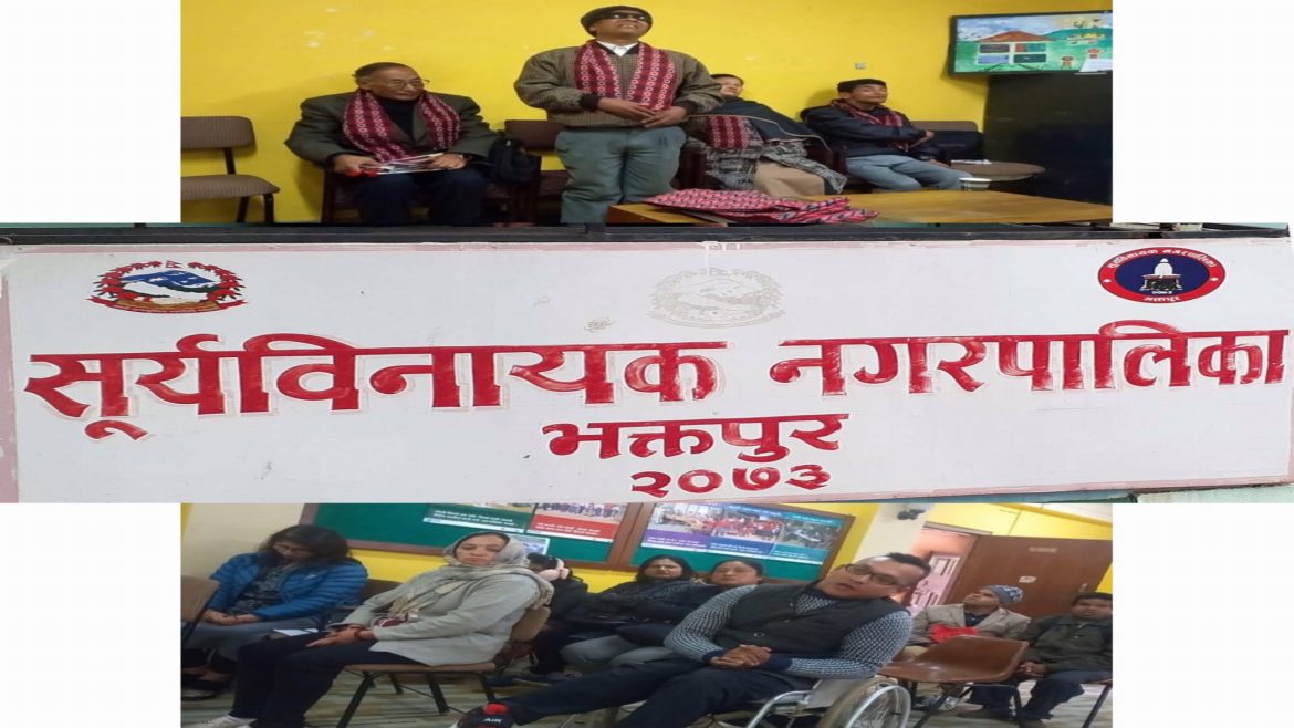 भक्तपुरको सुर्यविनायक नगरपालिकाद्धारा आयोजित कार्यक्रममा अपाङ्गताको समग्र अवस्था,समस्या र उनिहरको वृत्ति विकाशका लागि गर्नु पर्ने पहलकदमी विषय अन्तरक्रिया गरिएको हो ।