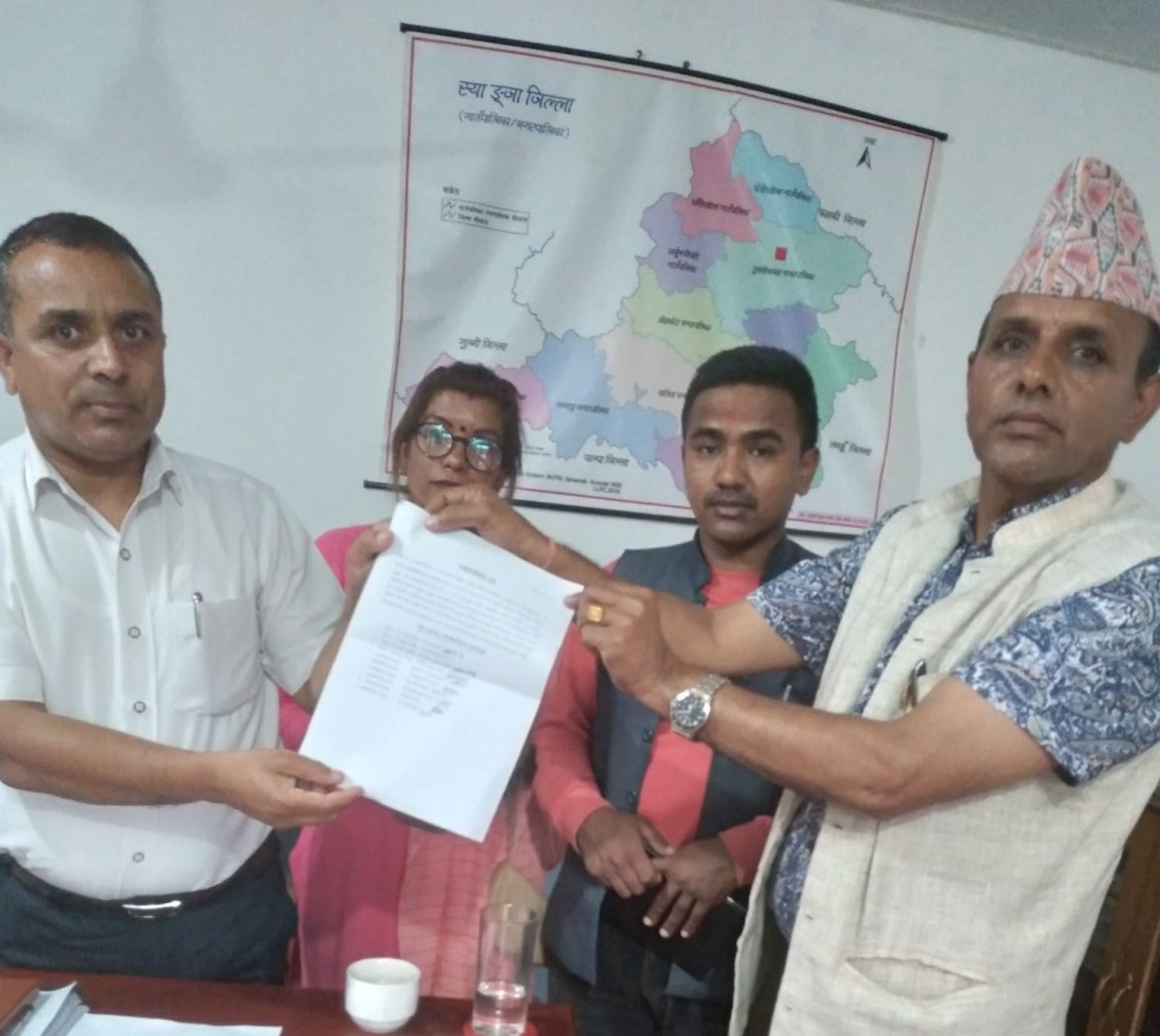 जेठ २३ स्याङ्जा । स्याङजाको फेदीखोला गाउँपालिकामा कार्यपालिका बैठकको माग राख्दै नेपाली कांग्रेसबाट निर्वाचित जनप्रतिनीधिले ध्यानाकर्षण गराएका छन् ।