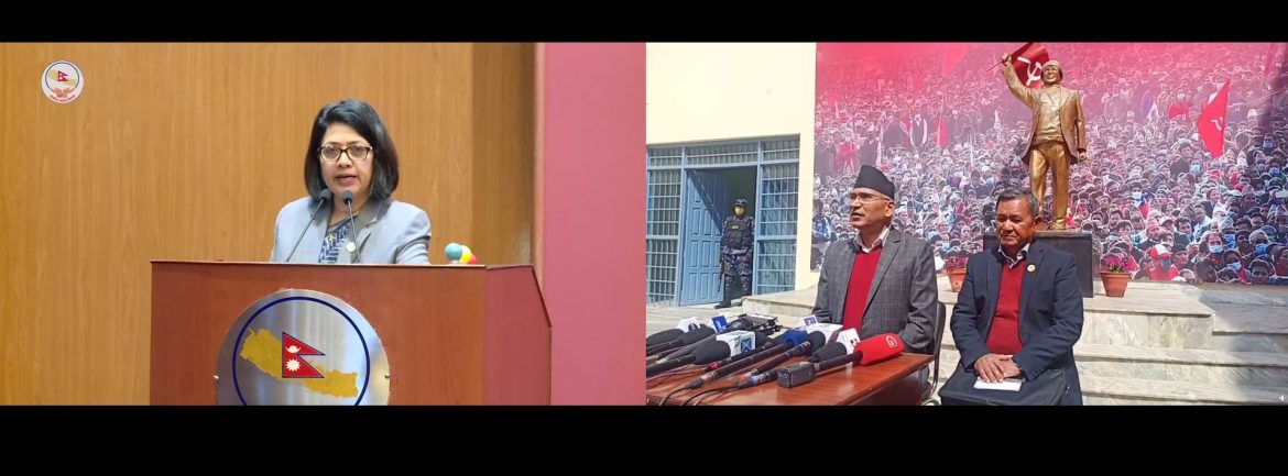 बैठकको निर्णय जानकारी गराउँदै उपाध्यक्ष विष्णु पौडेलले पुस १० भएको सहमतिअनुसार प्रधानमन्त्री पुष्पकमल दाहाल नगएको र प्रधानमन्त्री दाहालले नेकपा एमालेलाई सरकारबाट बाहिरिन दबाब दिएको बताए ।